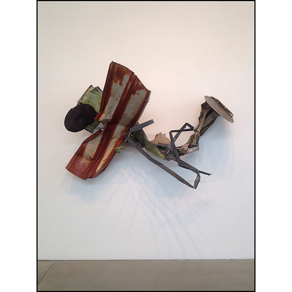 Not new, actually decades old, the current exhibition at the Gagosian Beverly Hills hosts a collection of Rauschenberg’s works created using metal components. Nostalgic, poetic, somber, formal and yet casual in the way they’re collaged, these works by Rauschenberg are from the 80s and 90s. Assembled by way of paint on metallic substrates, these works include urban vestiges and manufactured elements. The result feels worn and warm, and familiar and textured and spacial, and their influence on the Fine Art being made by other artists during the last ten years is obvious.