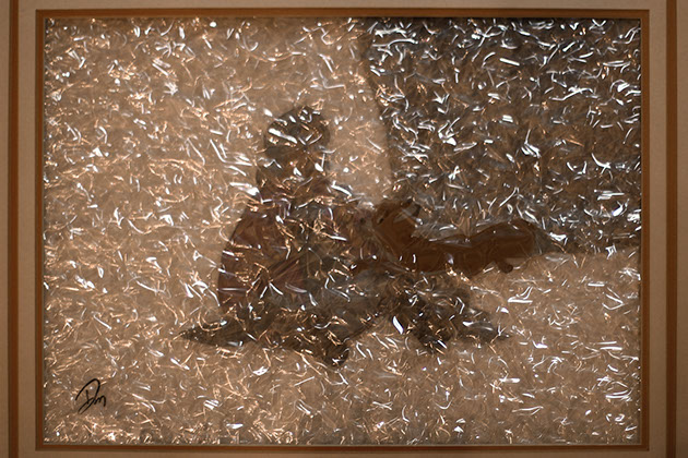 Degradation to Disney Tri-Acetate Cels which were Mactac laminated at Disney over the course of 17 years, circa 1974-1991. The shrinking of this plastic was also discussed at the SAS 31st conference in Lisbon.